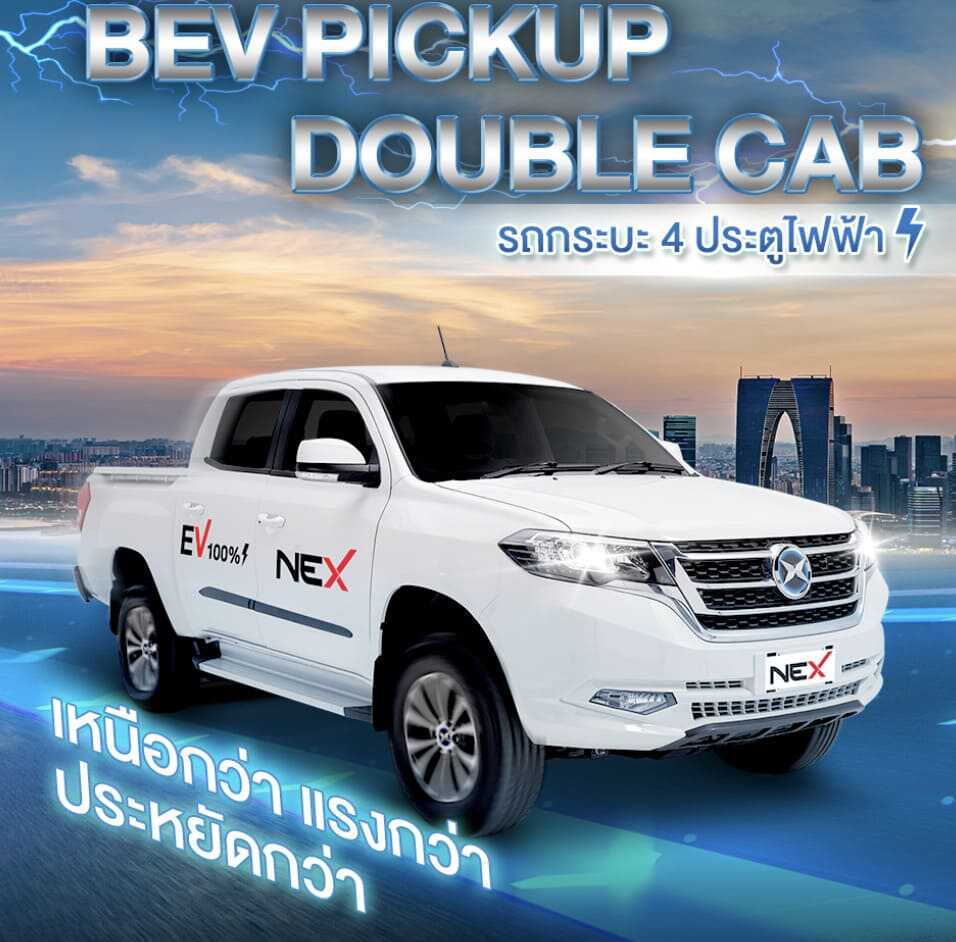 NEX BEV PICKUP TRUCK DOUBLE CAB คือปิกอัพ 4 ประตูพลังงานไฟฟ้าจาก NEX ที่จะพลิกโฉมหน้าของวงการรถกระบะในปัจจุบัน ขับขี่อย่างเหนือชั้นไปกับสมรรถนะแรงสูง ด้วยกำลัง 122 แรงม้าที่ให้แรงบิดสูงสุด 360 นิวตันเมตร เร่งความเร็วได้สูงสุด 120 กม. ช่วยให้ถึงที่หมายได้อย่างรวดเร็วและปลอดภัย มีระบบกันสะเทือนเพื่อให้นั่งได้แบบนิ่ม ๆ และยังเป็นปิกอัพพลังงานสะอาดที่ใช้พลังงานจากแบตเตอรี่ไฟฟ้า มีจุดชาร์จแบตเตอรี่กระจายอยู่ทั่วประเทศ หาที่ชาร์จได้ง่าย ชาร์จแค่ครั้งเดียวก็วิ่งกันได้ยาว ๆ โดยไม่รบกวนสิ่งแวดล้อมด้วยราคาเริ่มต้นเพียงคันละ 1.49 ล้านบาทเท่านั้น